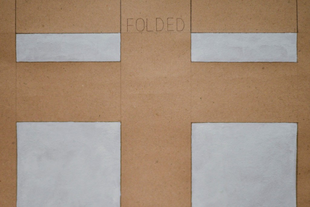 For this piece I decided to work on the floor plan of the exhibition space where we displayed our final works for the ‘Symbiotic Perspectives’ show. Here, painting is used as an instrument to erase and hide, rather than create and add. A patient process of overlapping allows the negative space to gently emerge on the canvas’ surface. The only color used is white, where plain layers cover the pen drawing below and creates a further structure where the work evolves.