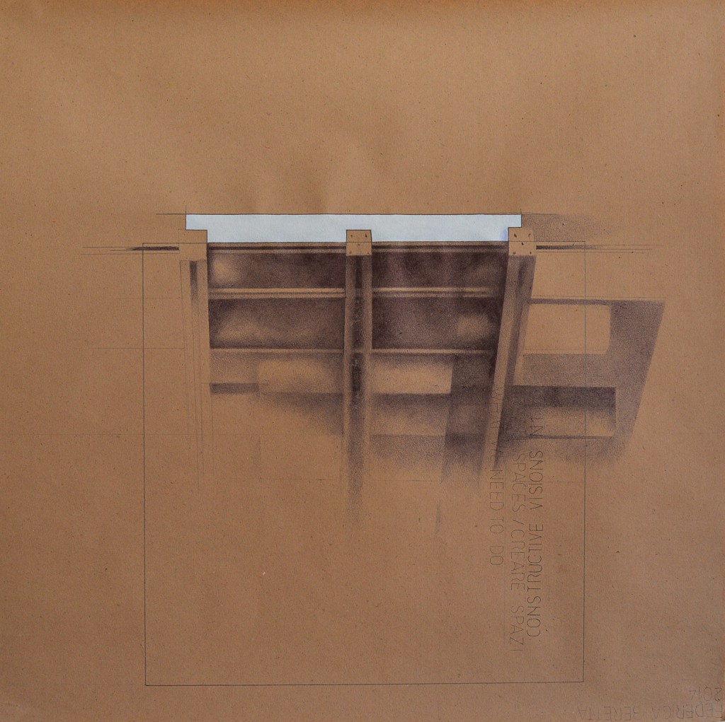 Drawing on tracing paper recalls the architecture practice, but here the focus is on filling the voids, rather than marking the structure. Working on the negative space of my apartment’s floor plant acts as an X Ray, a way to reduce the physicality of the space to the nothingness, keeping only the invisible space and discarding all the rest.