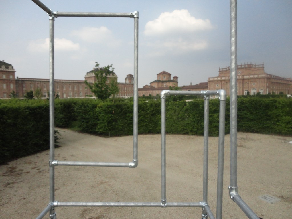The skeleton of the helmet is upside down as an old, consumed and forgot object, as a witness from the past. But at the same time I used metallic tubes and joints to assemble it, as a big scaffolding of something that still has to be built.