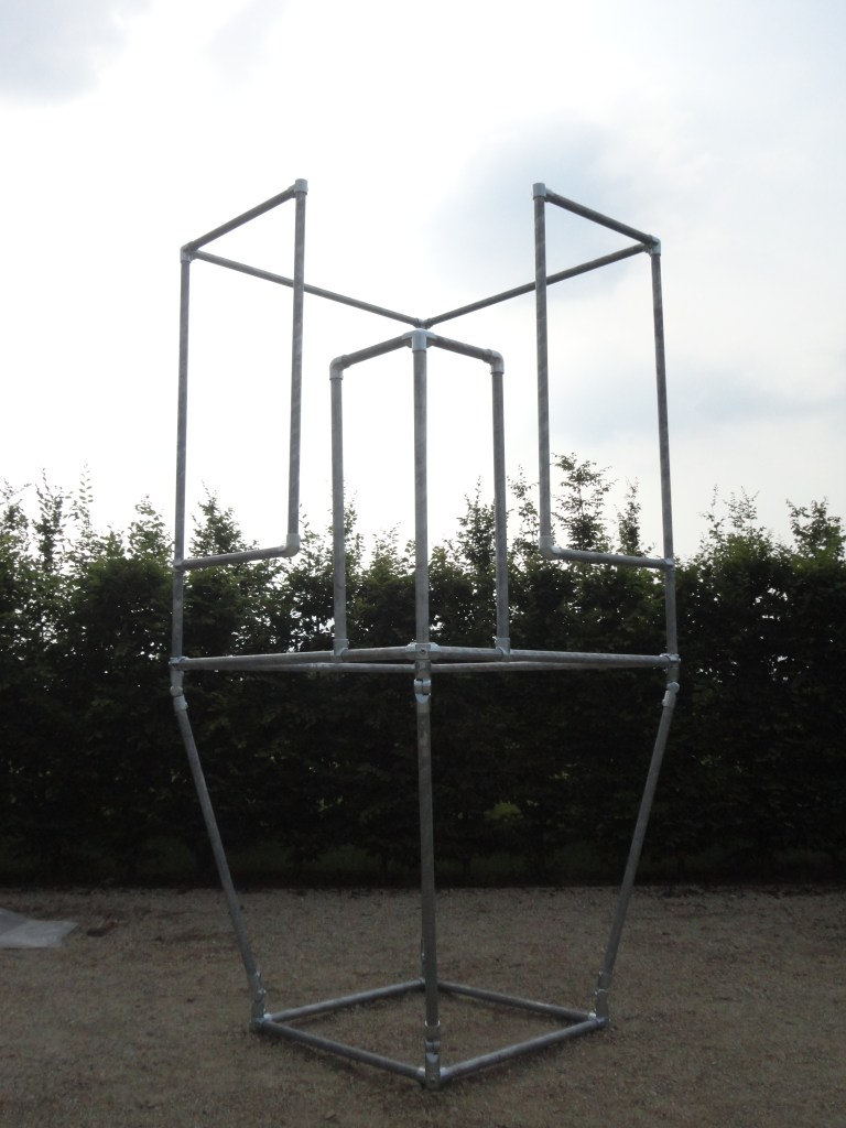 The structure is three meters and a half high and summarizes these two opposite processes.