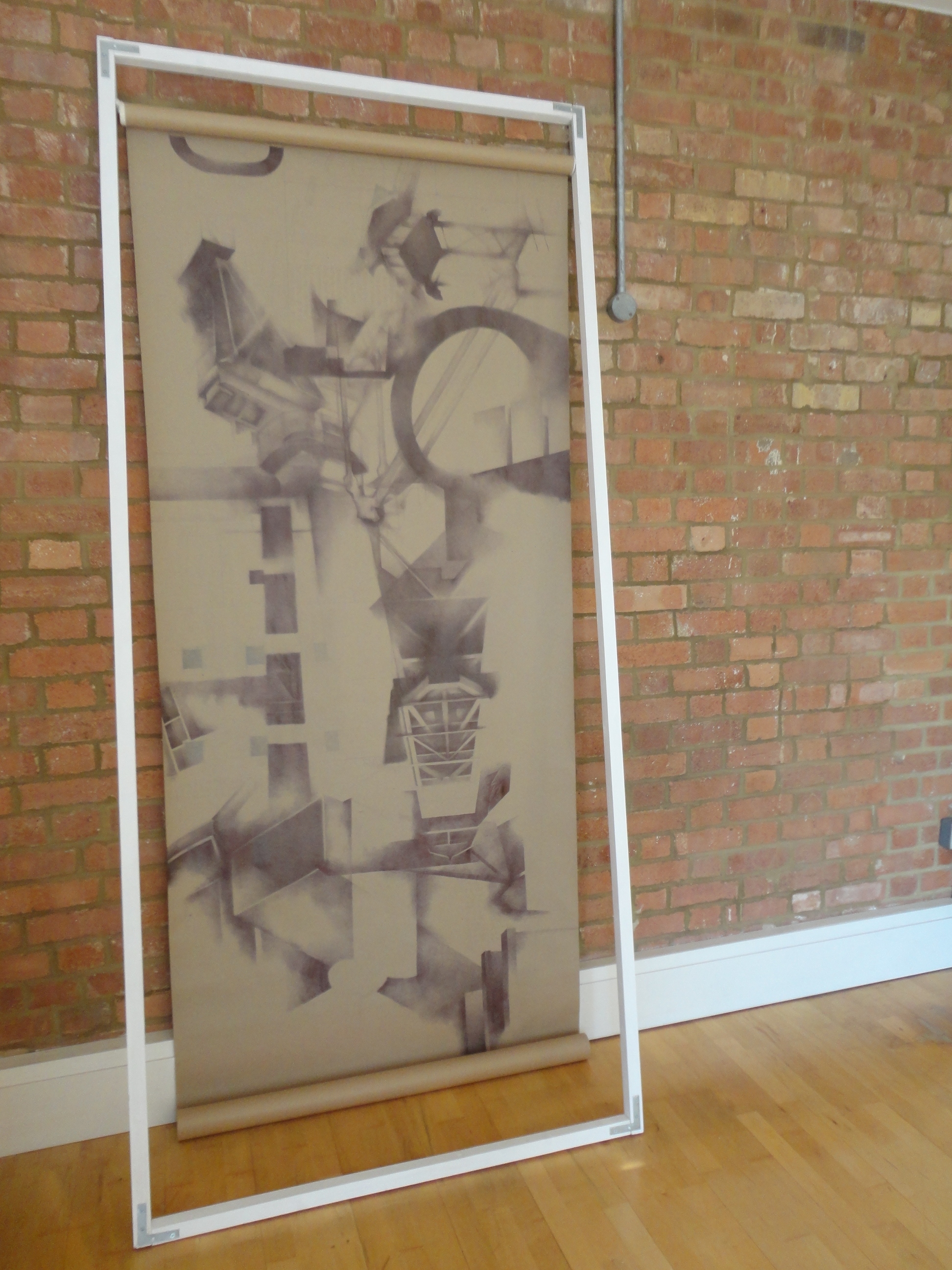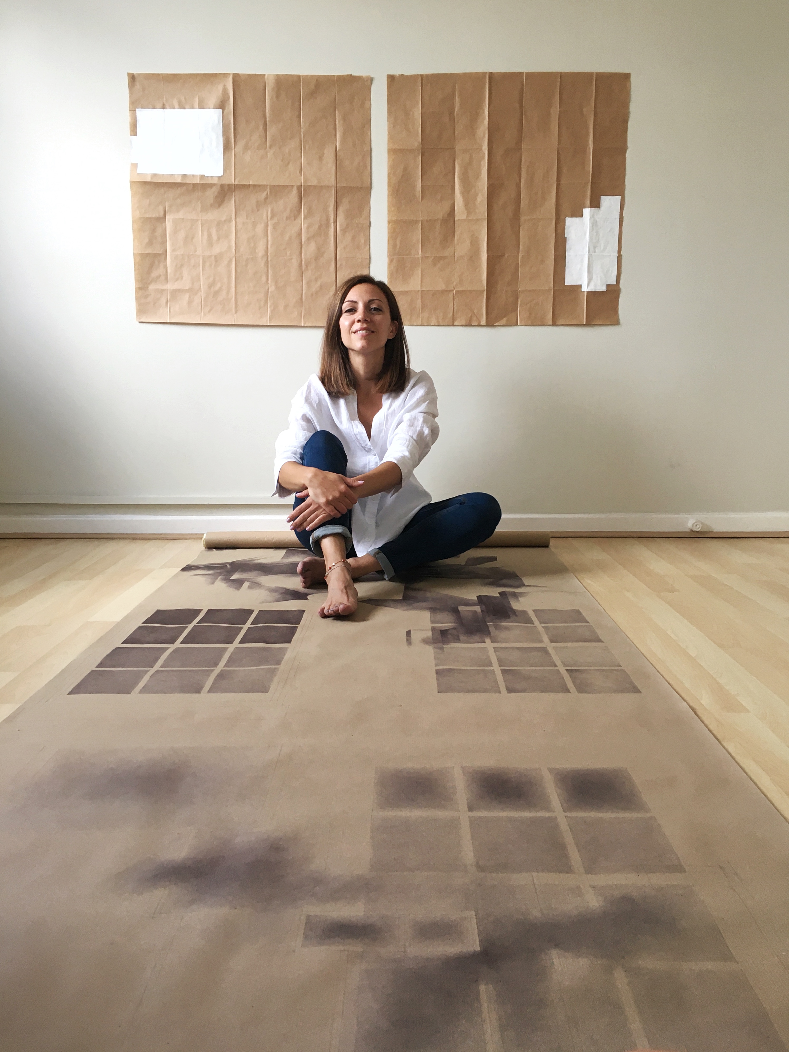 strokes outline the floor map on the canvas; then, the brushstrokes patiently wash over the