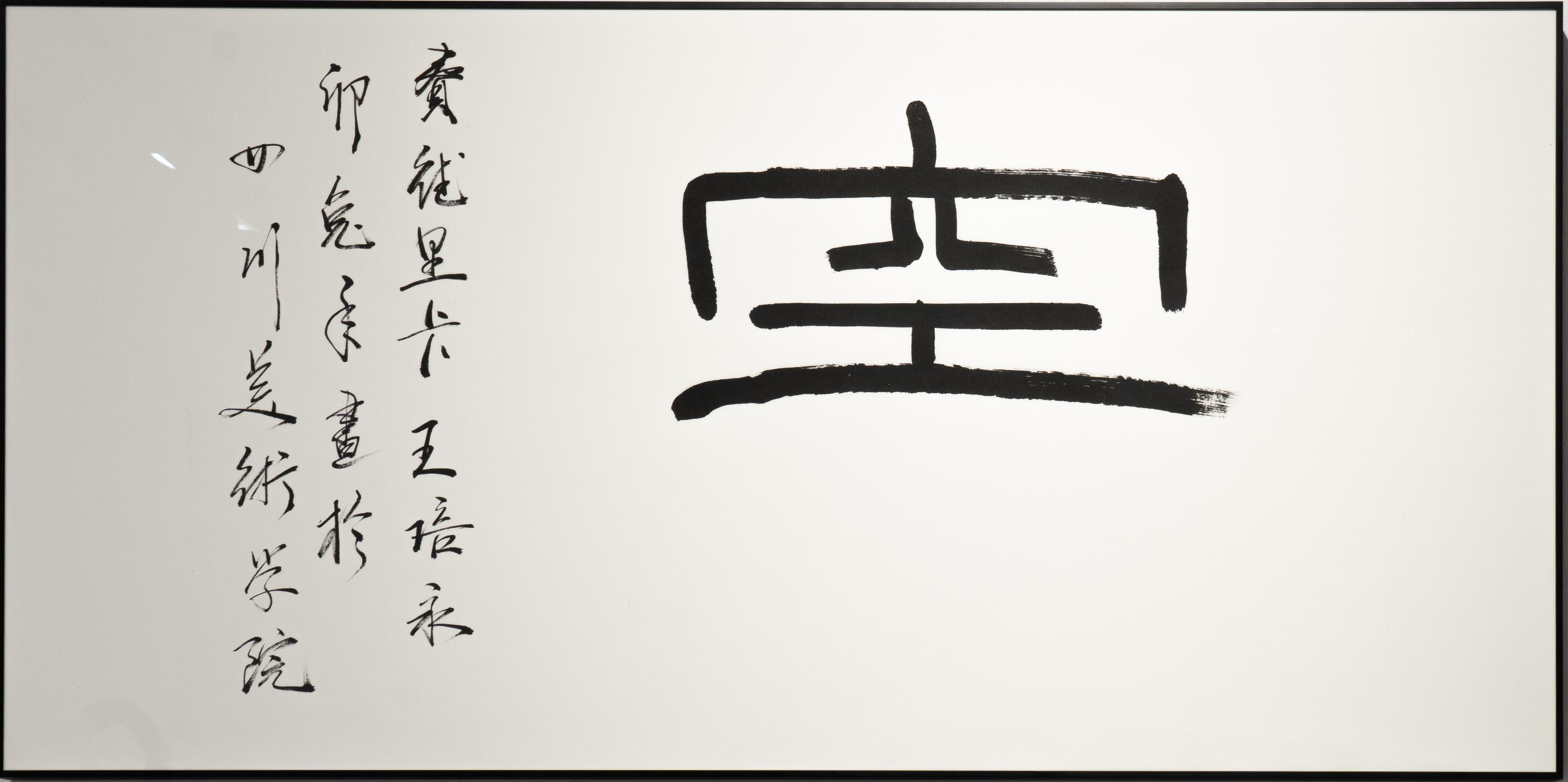 I created this piece after many attempts, under the guidance of Professor Wong, who generously shared his knowledge and studio space with me. I chose to write the character that refers to the word ‘empty’, to deeply explore my ideas on the void in the physical space. However, this word does not not only refer to the emptiness of space, but on a more philosophical level, also to the emptiness and nothingness of our entire human state. Professor Wong completed the work inserting the text on the left.