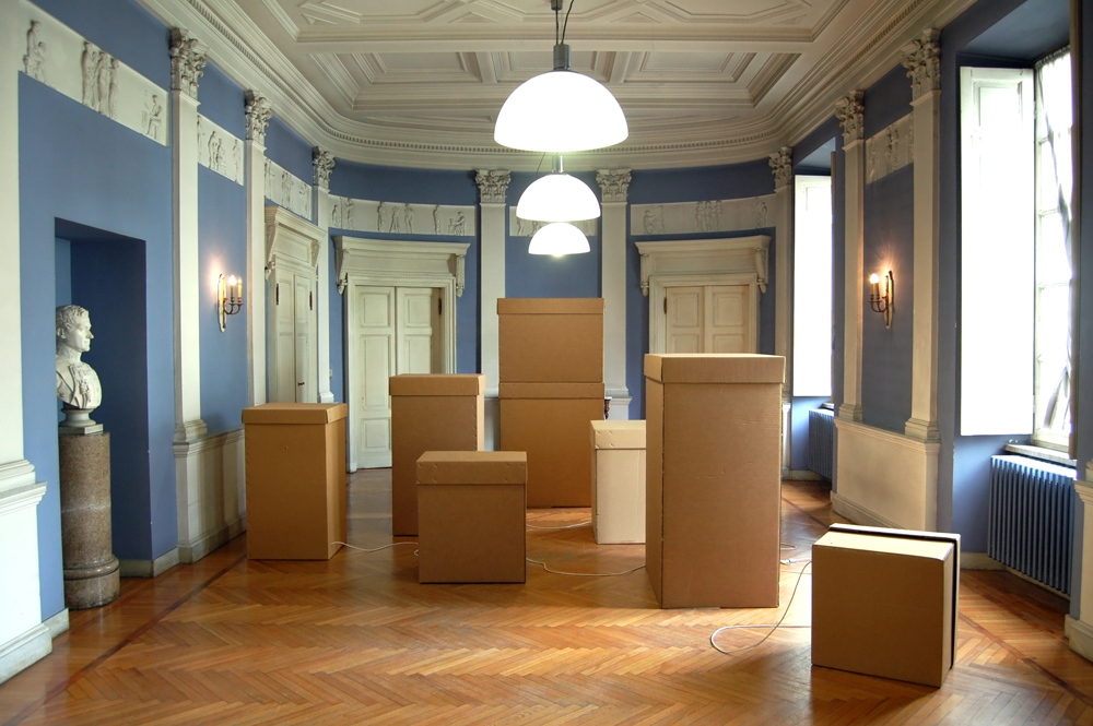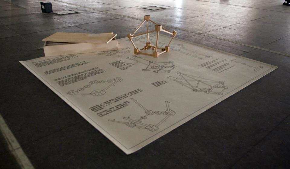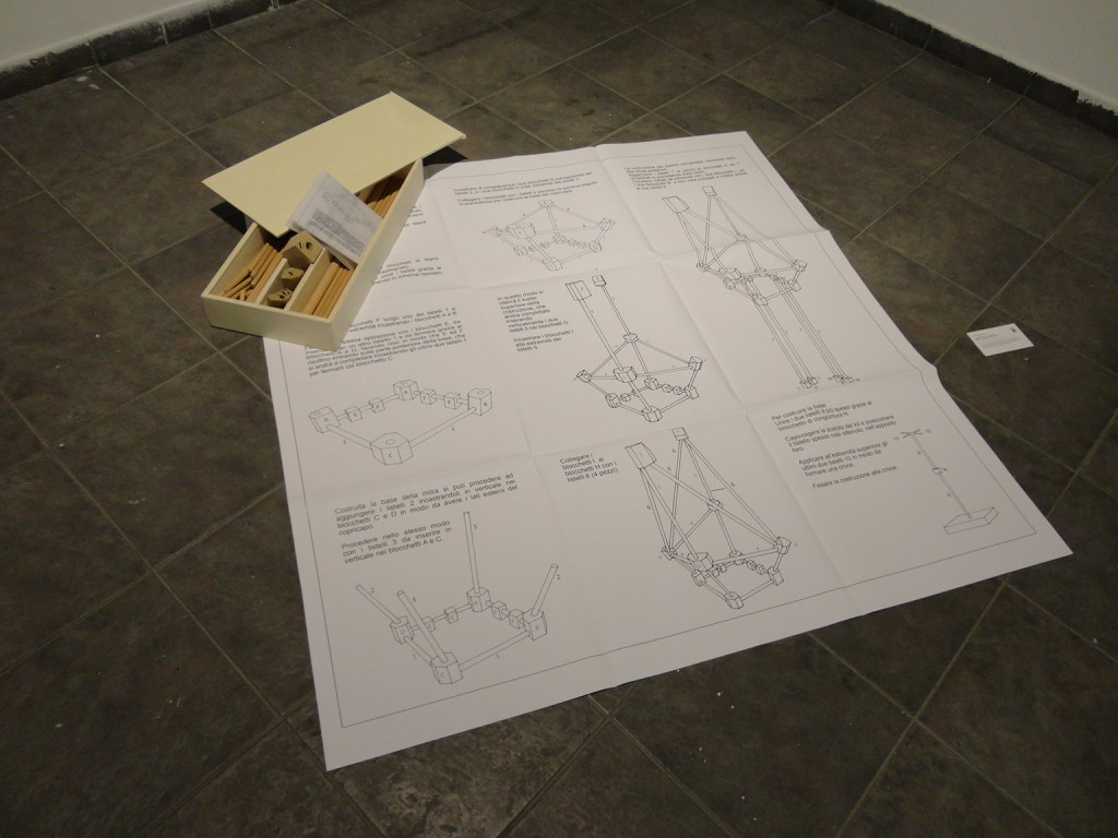 Wooden box, wooden blocks, foldable paper instruction manual, printed mat